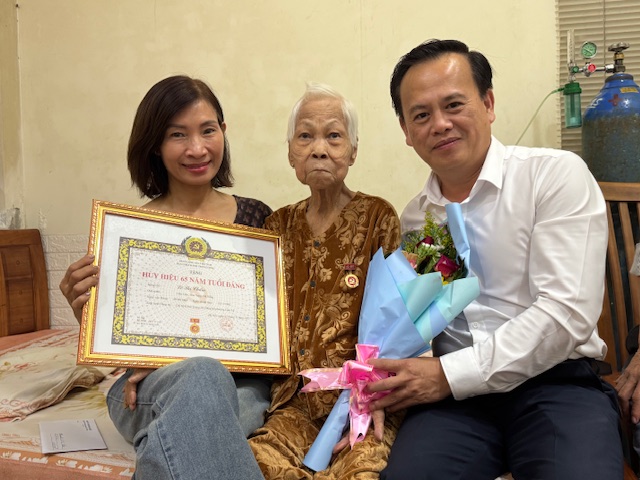 Chiều cùng ngày, đồng chí Nguyễn Hoài Nam - Bí thư Đảng uỷ phường, Chủ tịch HĐND lâm thời phường đã đến trực tiếp nhà 02 đồng chí đảng viên đủ tiêu chuẩn nhận huy hiệu 55 năm tuổi Đảng và 45 năm tuổi Đảng để trao tặng Huy hiệu Đảng do sức khoẻ già yếu không tham dự buổi Lễ trao tặng tại phường vào sáng nay.