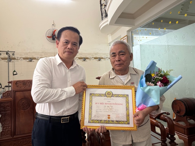 Lãnh đạo phường trao huy hiệu 50 năm tuổi đảng cho đồng chí Đảng viên