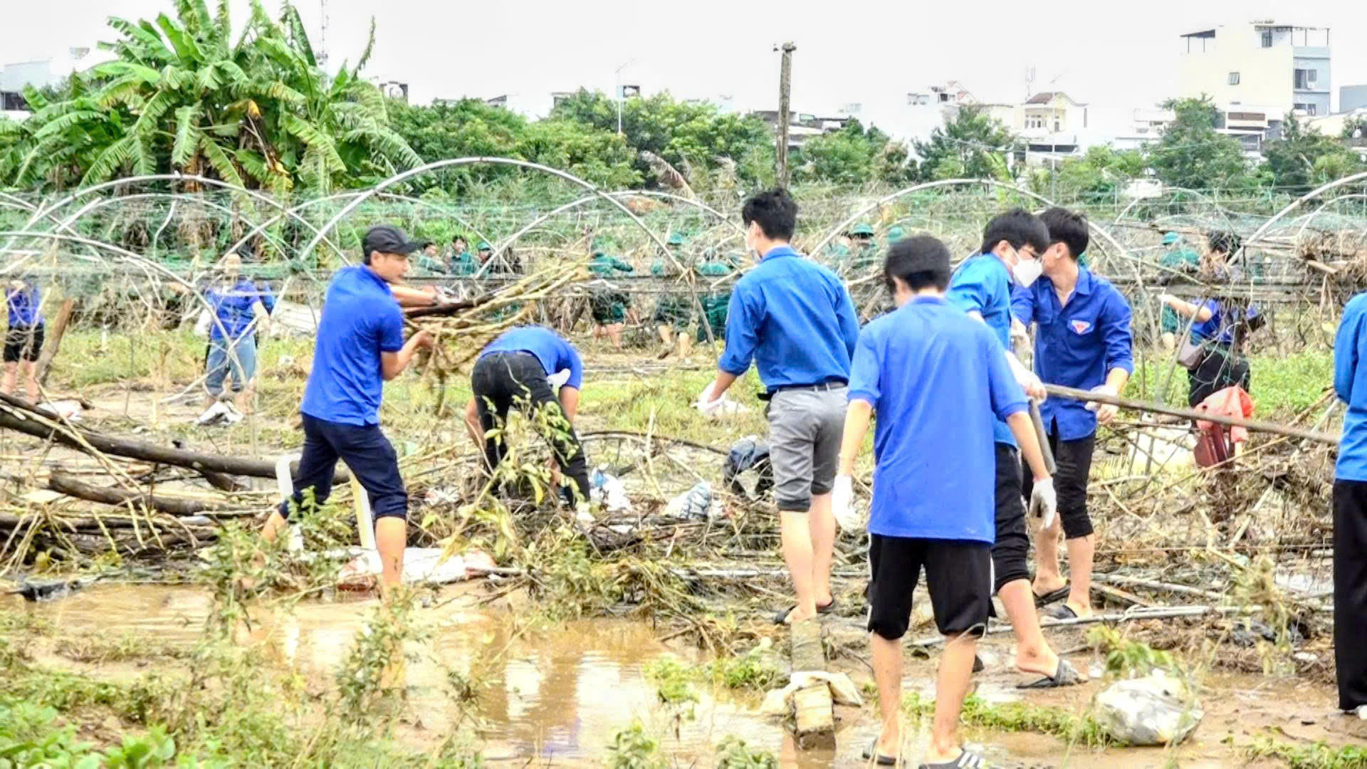 Ra quân don dẹp vệ sinh môi trường vùng rau la hường sau ngập lụt