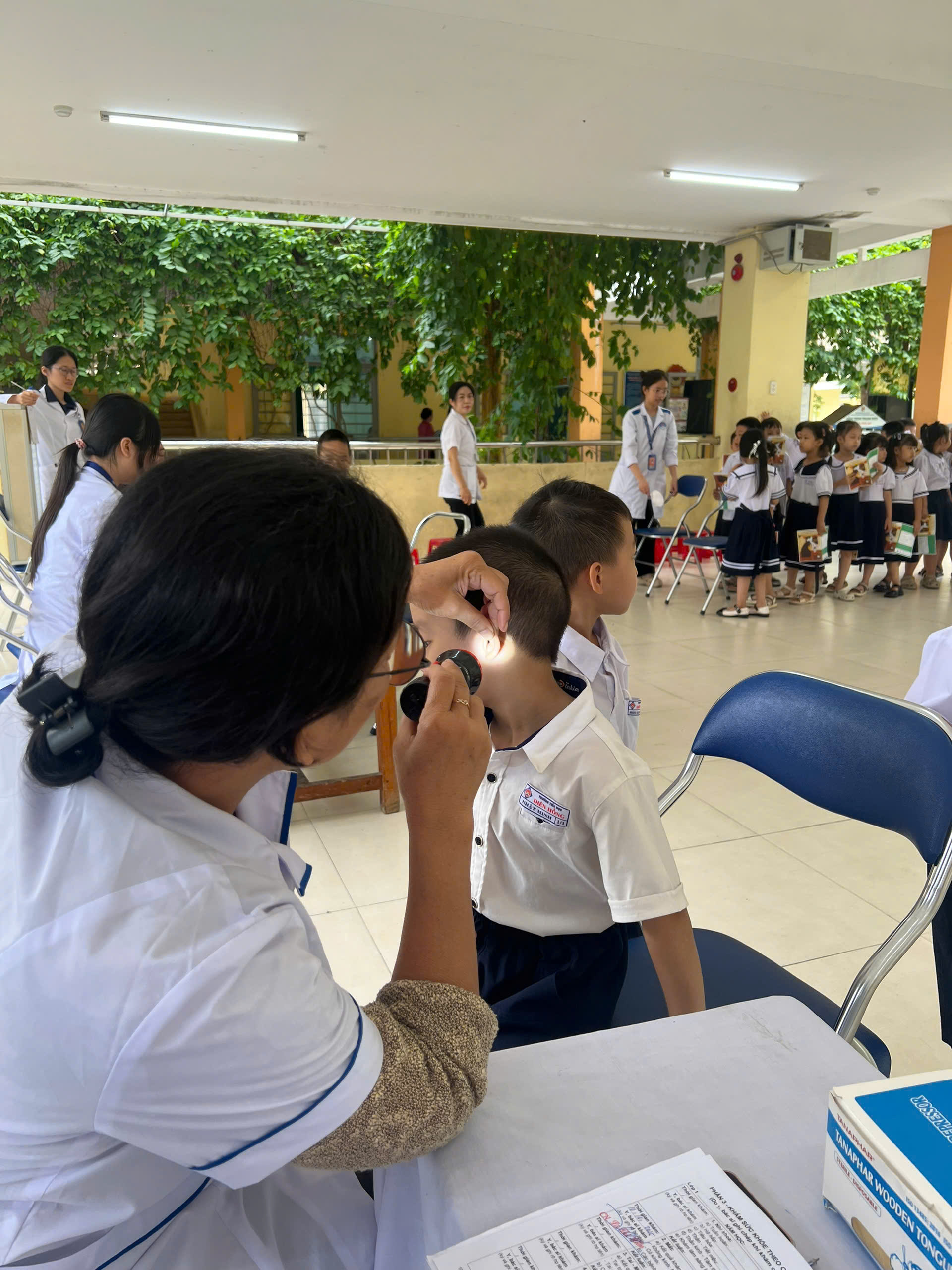 Nhằm đảm bảo công tác chăm sóc và bảo vệ sức khỏe ban đầu cho học sinh, đồng thời sớm phát hiện, tư vấn các vấn đề liên quan đến sức khỏe, thể chất và dinh dưỡng cho học sinh. Các Y, Bác sĩ Trung tâm Y tế khu vực Cẩm Lệ và Trạm Y tế phường Cẩm Lệ phối hợp cùng các trường Mầm non, Tiểu học và Trung học cơ sở trên địa bàn tổ chức khám sức khỏe định kỳ đầu năm học học 2025 - 2026 cho toàn bộ học sinh.