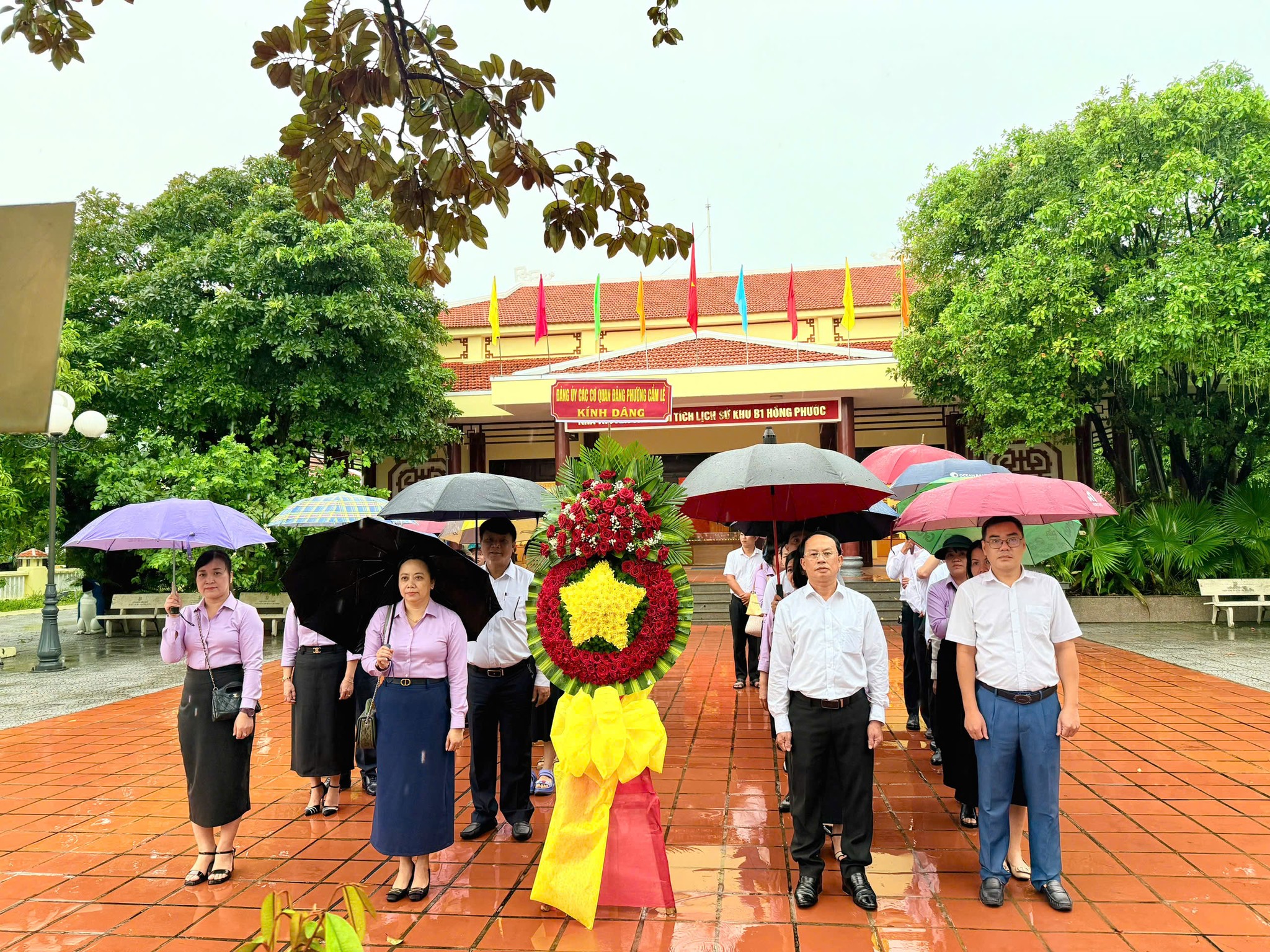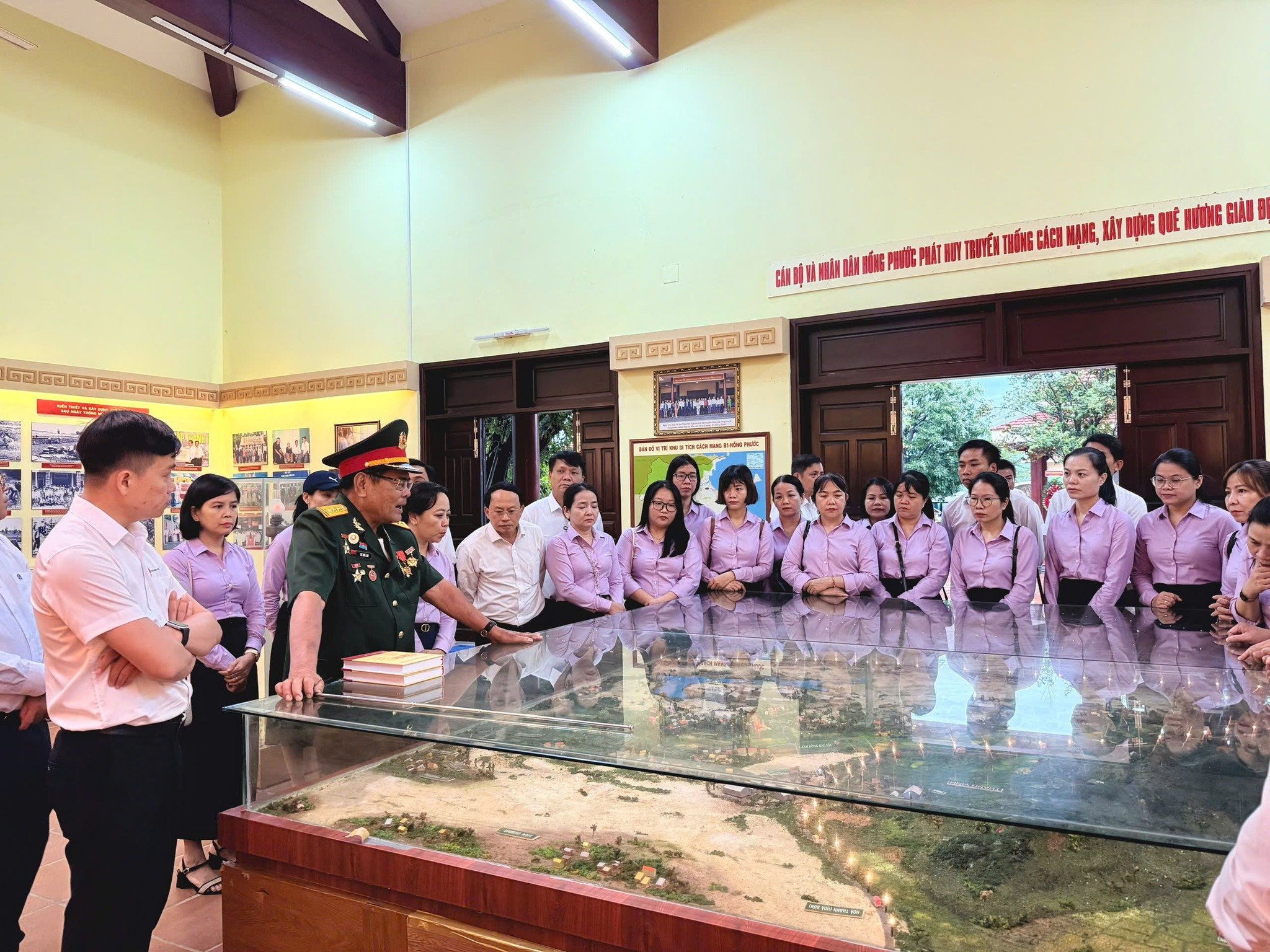 Tại đây, đoàn đã dâng hương tưởng niệm các anh hùng liệt sĩ, nghe giới thiệu về quá trình hình thành và hoạt động của khu căn cứ – nơi từng là điểm liên lạc quan trọng, che giấu và bảo vệ cán bộ cách mạng trong những năm kháng chiến chống Mỹ, những câu chuyện cảm động về các chiến sĩ cách mạng, những người dân kiên trung, bất khuất đã hy sinh vì độc lập, tự do cho Tổ quốc của vùng đất này, cùng với đó là những hình ảnh, hiện vật được lưu giữ tại di tích đã giúp cán bộ, đảng viên trong Đảng bộ hiểu rõ hơn tinh thần chiến đấu kiên cường, lòng trung dũng của quân và dân ta trong giai đoạn gian khổ mà oanh liệt của dân tộc.