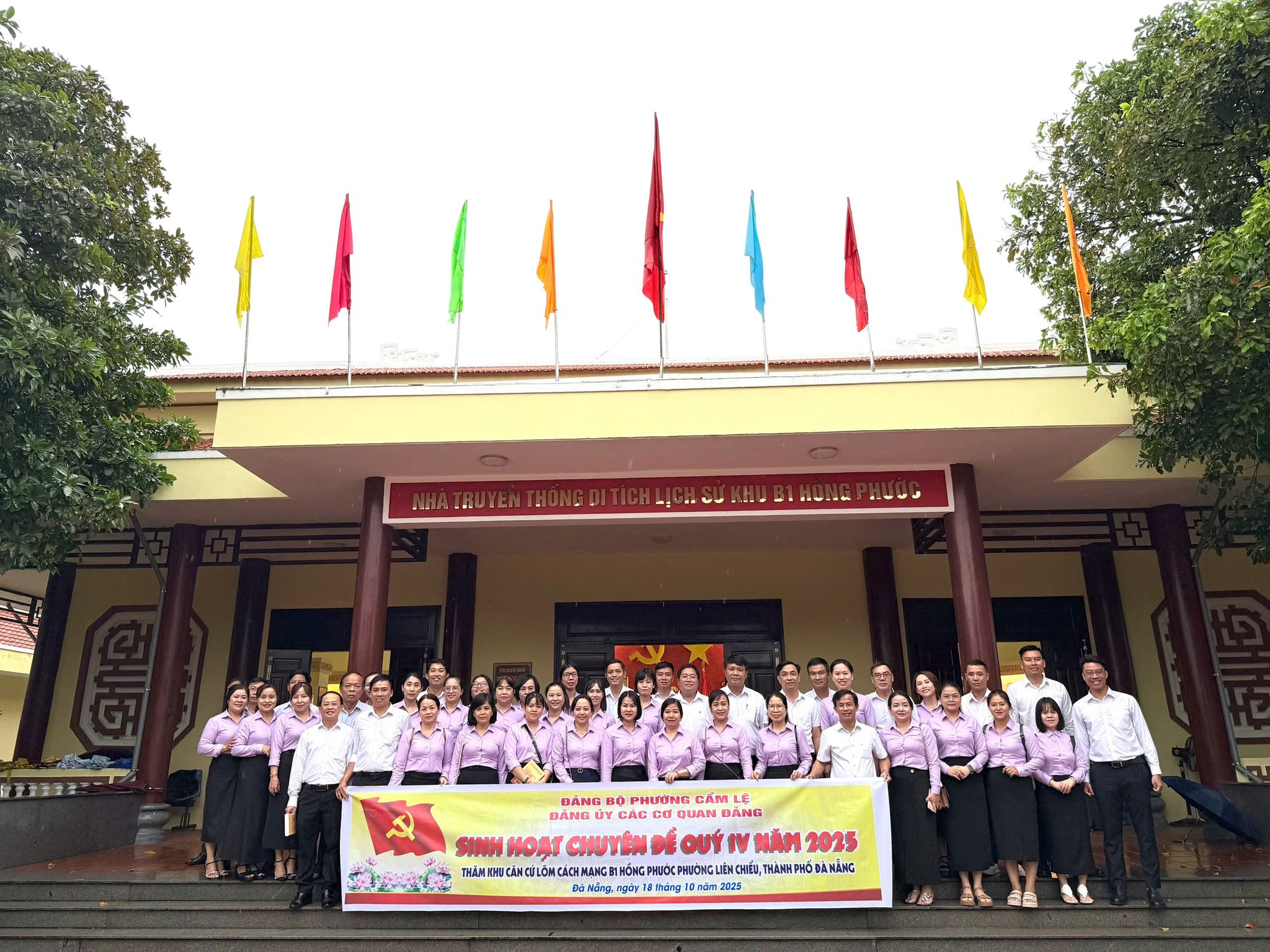 Sáng ngày 18/10, Đảng bộ các cơ quan Đảng phường Cẩm Lệ tổ chức sinh hoạt chuyên đề tìm hiểu lịch sử tại Khu căn cứ lõm cách mạng B1 Hồng Phước, phường Liên Chiểu, TP Đà Nẵng cho cán bộ, đảng viên trong toàn Đảng bộ. Đây là hoạt động nhằm chào mừng thành công Đại hội đại biểu mặt trận tổ quốc Việt Nam và các tổ chức chính trị - xã hội phường lần thứ I, nhiệm kỳ 2025 - 2030; chào mừng ngày truyền thống các cơ quan chuyên trách tham mưu, giúp việc của Đảng ủy; chào mừng kỷ niệm 95 năm ngày thành lập Hội Nông dân Việt Nam (14/10/1930), Hội Liên hiệp Phụ nữ Việt Nam (20/10/1930) và 69 năm truyền thống Hội Liên hiệp Thanh niên Việt Nam (15/10/1956); đây cũng là nội dung sinh hoạt chuyên đề trong quí IV năm 2025 của Đảng bộ các cơ quan Đảng phường.